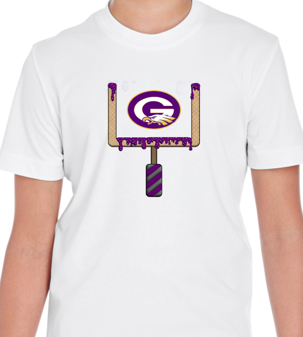Goshen Design Football Drip on Team 365 Dri-Fit short sleeve or A4 Dri-Fit short sleeve hoodie.