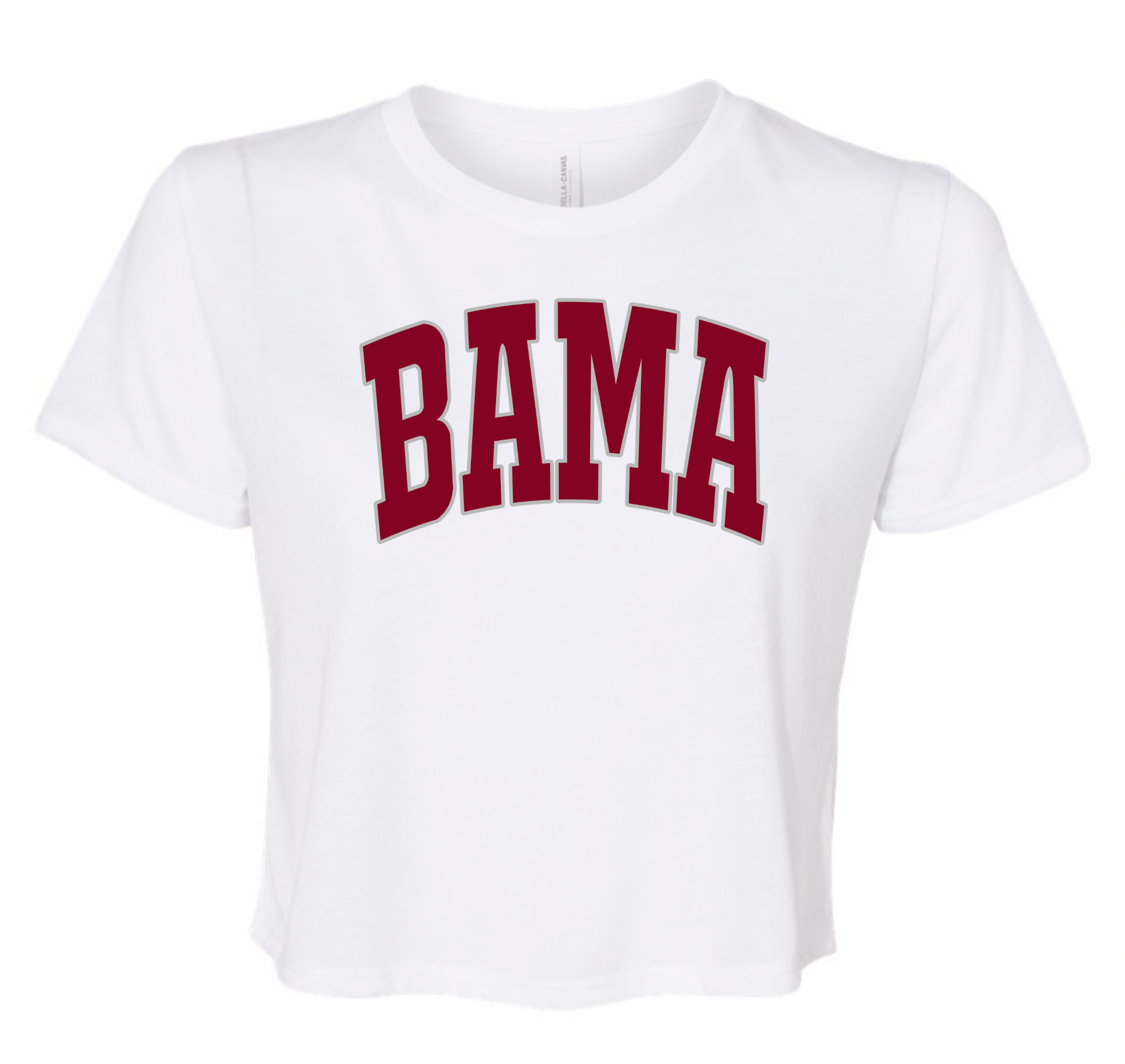 BAMA curve on Bella Women’s Flowy Crop Tee - 8882 or Comfort Color