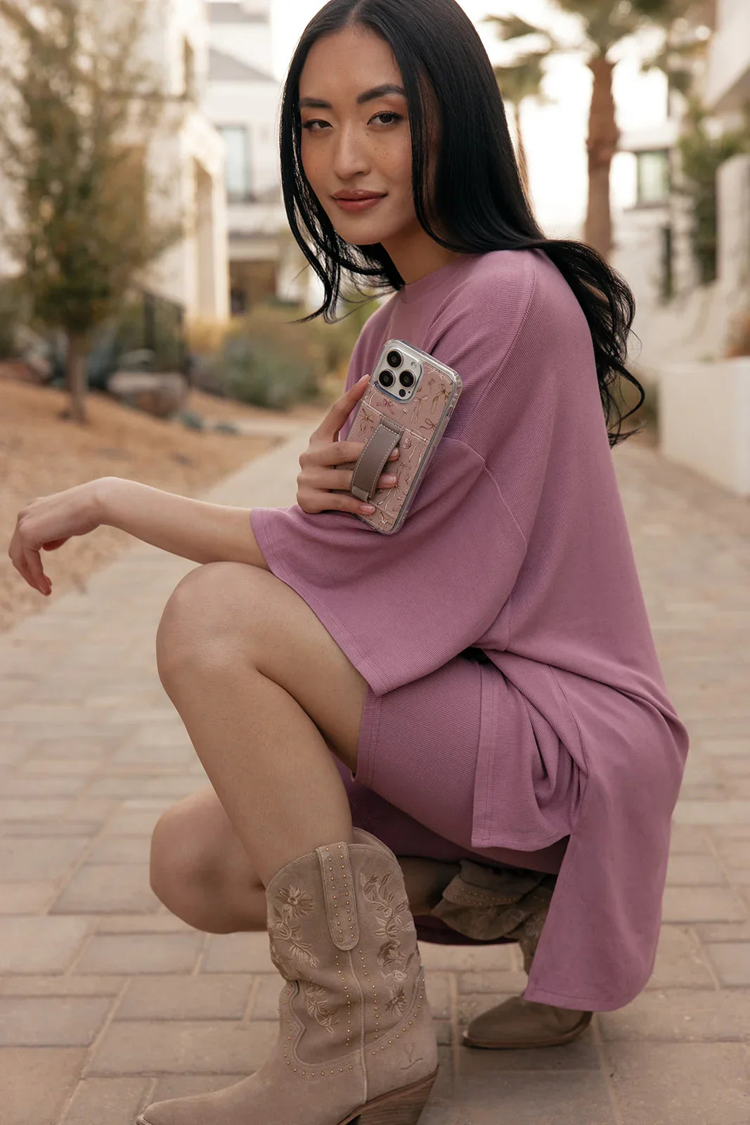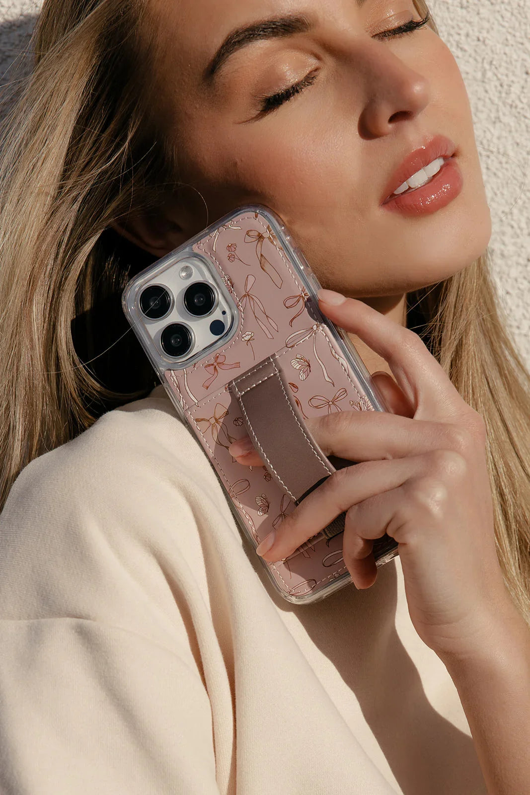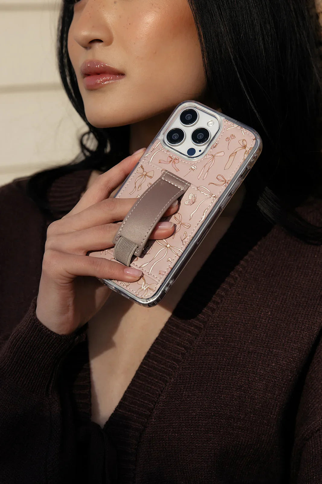 Case Design: Mauve, brown and cream bows on a mauve background