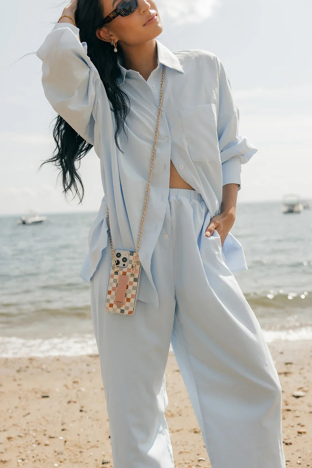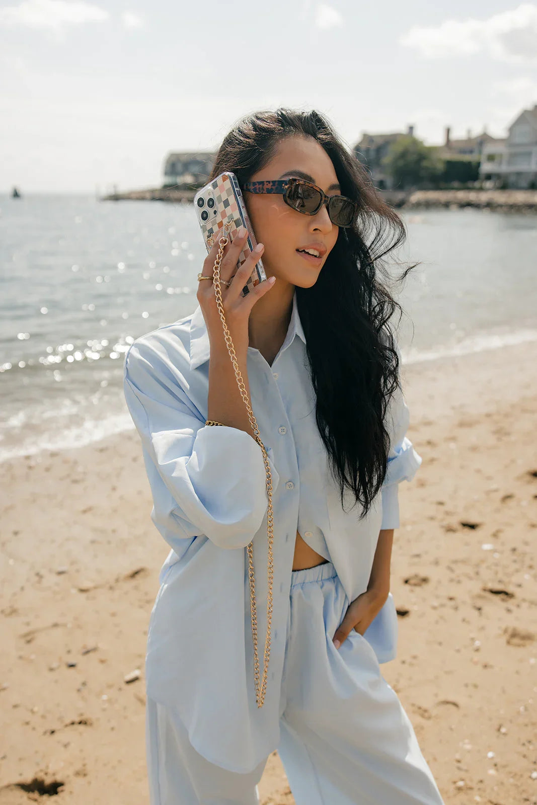 Pair this case with the coordinating Coastal Check wrist lanyard and Apple watch band!