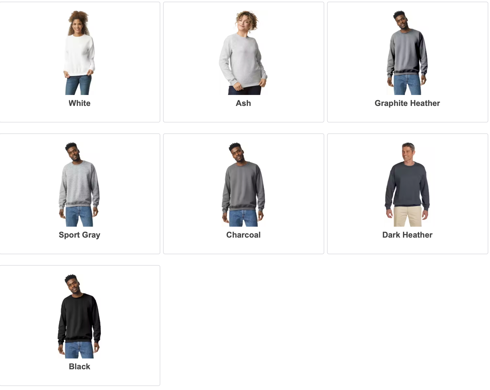 Script text curved around the collar of your Gildan unisex sweatshirt. Font will be as pictured. Please leave a note in the cart with the sweatshirt color, text, and text color you'd like on your custom sweatshirt. You will receive a confirmation on your design before it is embroidered.