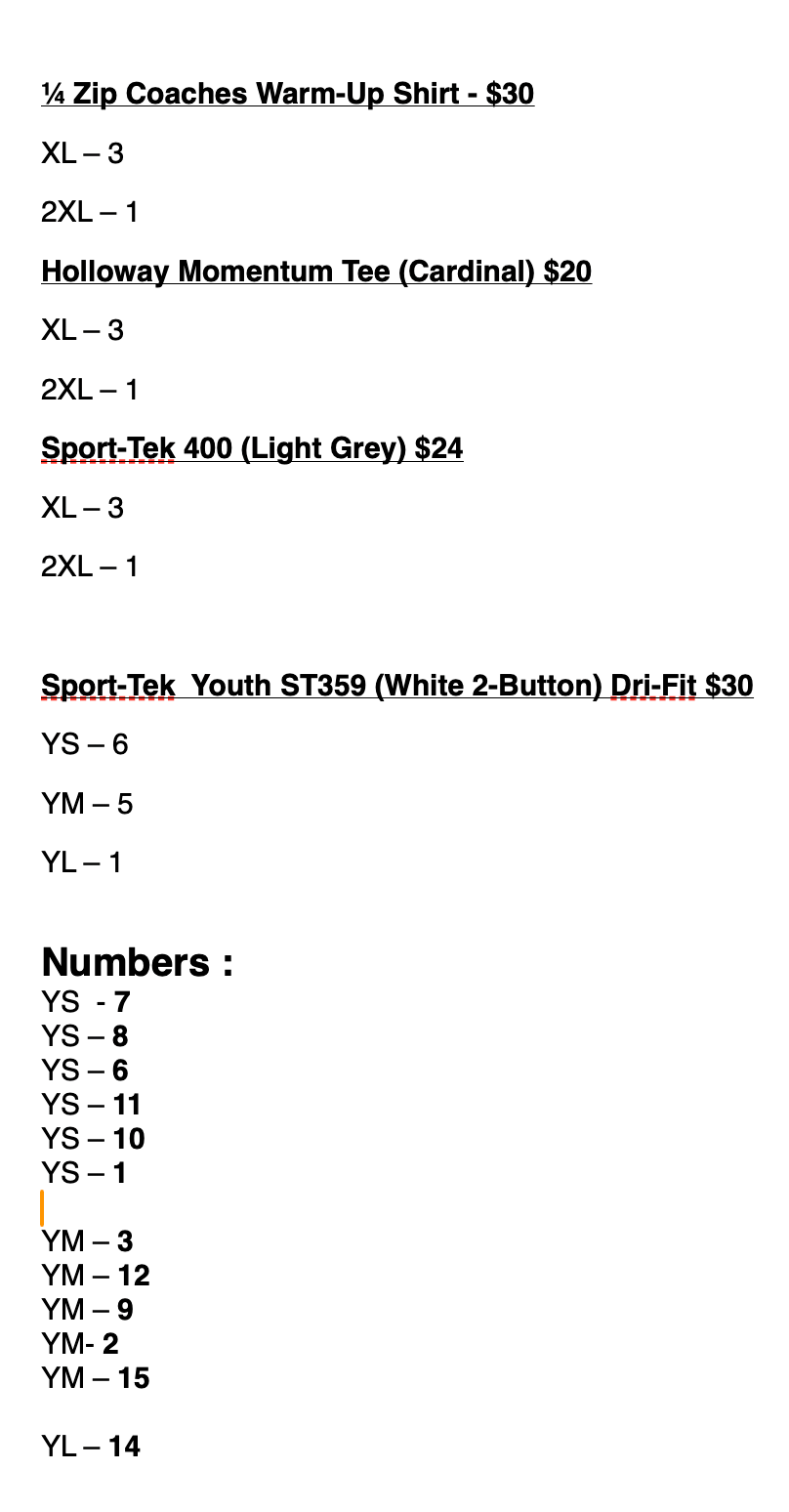 Sport-tek YST359 (white) - Bama Script w/# on back - $30 x 12: $365
