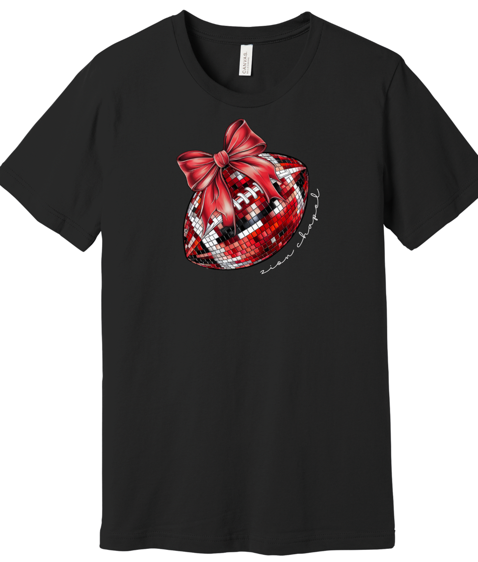 Zion Chapel Disco Football Design on Bella Unisex or Youth black short sleeve shirt