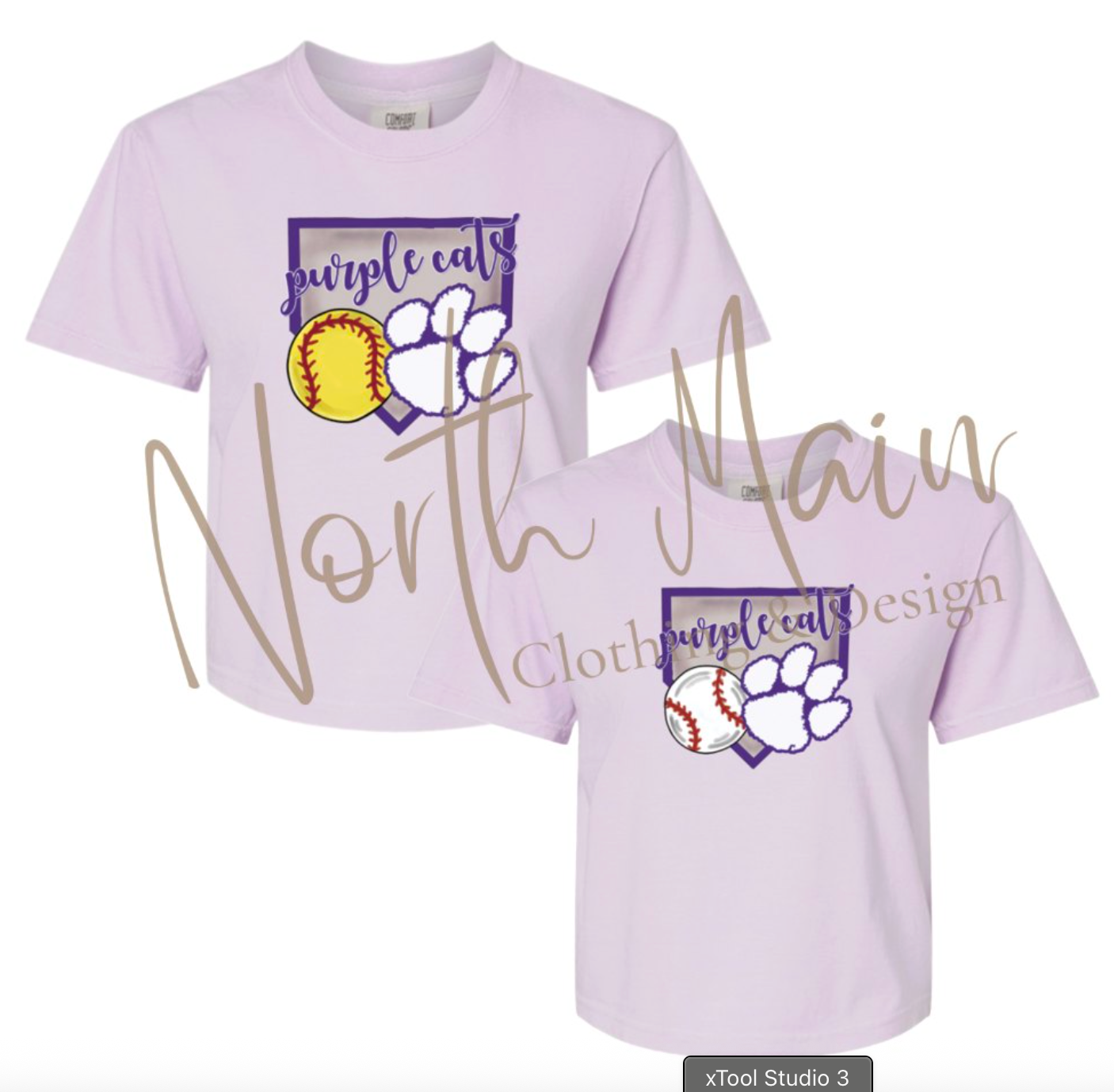 Your team baseball/softball home plate design on comfort color boxy tee or regular short sleeve tee. Can do baseball & softball together & custom teams! Choose "custom" & leave note at checkout for a custom design. You will receive a mock-up before your shirt is made!
